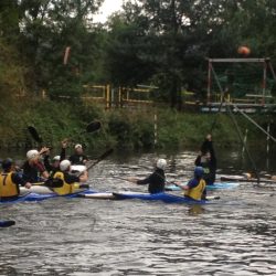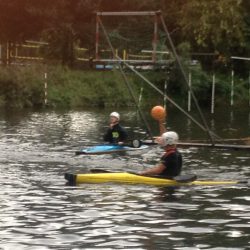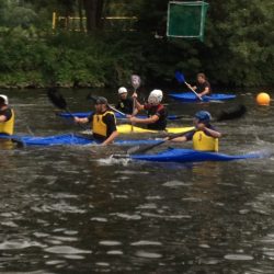 Gemeinsam mit einer wackeren Spielerin und drei Spielern aus Riesa und Glauchau, haben die Schweifsterne dieses Jahr zum ersten Mal eine Spielgemeinschaft gebildet, um beim Fun-Turnier in Jena zu starten. Während die erste Garde der drei Vereine in einer Spielgemeinschaft auf der Deutschen Meisterschaft (erfolgreich) um den Wiederaufstieg in die erste Liga antrat, brachen wir mit einer wild zusammengewürfelten Truppe aus Spielern, Booten und Autos aus Sachsen auf, um in Jena unseren Spaß zu haben. Bereits am Anreiseabend erprobten wir unser Material und die Spielbedingungen auf der Saale – alles in bestem Zustand. In gewohnter Präzession und Eleganz durchschnitten unsere Plastikboote das Wasser.
