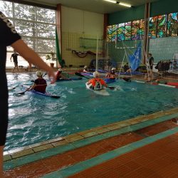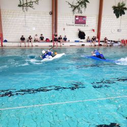 Die Schweifsterne rückten dieses Jahr in Neubesetzung an, so war es für unsere drei Damen Drea, Lena und Hannah das erste Hallenturnier überhaupt. Ergänzt wurde das Team durch Ule und Lilly, sowie Thomas, der am Sonntag Lilly ersetzte. Unser Ziel war , parallel zu der laufenden Winterolympiade, dabeizusein. Also luden wir Samstag um 7 die Boote aufs Dach und auf nach Dessau.
