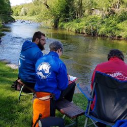 Eine Aufregung! Mein Tag ging dort mit umziehen los. Endlich fertig. Aber wir müssen doch noch die Boote vom Auto herunterladen und noch zum Start tragen. Danach sind wir mit unserem Trainer die Strecke abgelaufen. Endlich alles im Kopf drin! (2, 4, 17 nicht fahren!!!!! 3, 6, 10, 12, 15 aufwärts, 1, 5, 7, 8, 9, 11, 13, 14, 16, 18 abwärts!)