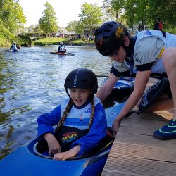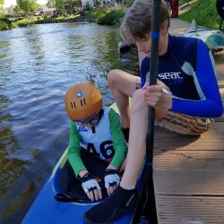 Die Spannung steigt und der erste Lauf beginnt. Endlich durch die Tore durchgekommen und nur 4 Strafsekunden. (Zwei Mal nur eine Stange berührt. Einmal eine Stange berührt = 2 Strafsekunden!) Ab zum Aussteigen! Wo ist denn meine Mama, die mir helfen wollte beim Aussteigen? Aha, da kommt sie ja schon. Sie war wahrscheinlich nicht so schnell mit Rennen, wie ich mit Paddeln. Cool, jetzt kann ich endlich etwas essen. Hab ich einen Riesenhunger! Das ist alles so lecker, was Mama mir da eingepackt hat. In einer Stunde ist ja schon der zweite Lauf. Ich bin durch alle Tore SUPER durchgekommen und habe auch wieder nur zwei Torstangen berührt. Unten angekommen war Mama eher da, als bei dem ersten Lauf und auch ich war bei dem zweitem Lauf schneller, als bei dem ersten. SIEGERAUSWERTUNG!