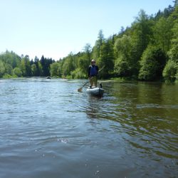 Wer sagt eigentlich, dass stehend paddeln eine Erfindung für ein Brett ist? Jan bewies uns mehrfach, dass auch im Kanadier stehend gepaddelt werden kann. Jedenfalls wusste er eigentlich immer, wenn irgendwo ein Stein lag.