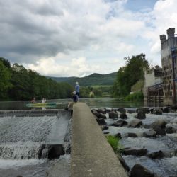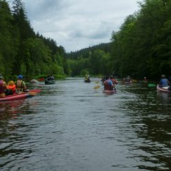Das Wetter ist super und so kann es losgehen mit dem Paddeln. Die Boote sind ausgeliehen (für die Erwachsenen) und wir wollen in 3 Tagen die Strecke zwischen Loket und Klášterec als schönster Abschnitt der Eger paddeln.