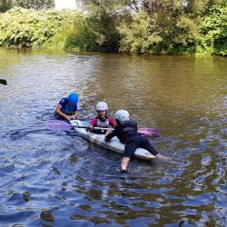Am 31. August trafen wir uns 7:30 am Bootshaus. Als wir in Frankenberg ankamen stellten wir fest, dass in der Zschopau wenig Wasser war. Wir waren sehr gespannt, welche Plätze wir belegen würden. Gerade schauten wir die Strecke an, als wir bemerkten, dass es nur noch 30 Minuten bis zu unserem 1. Lauf sind. Nach einer Erwärmung am Ufer der Zschopau mussten wir aufs Wasser. Nach dem Lauf freuten wir uns, weil wir eine gute Platzierung hatten. Danach kam eine kleine Mittagspause und schon ging es wieder auf das Wasser zum 2. Lauf. Mit Philip haben wir abschließend noch zwei Manschaftsläufe absolviert. Bei herrlichem Sommerwetter fieberten wir der Siegerehrung zu, da wir den 1. und den 2. Platz im Kajak weibliche Schüler C und Schüler B belegten.