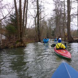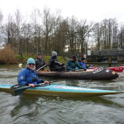 Seit 2000 führe ich diese Fahrt durch. Die erste Fahrt war perfekt: Sonne, Schnee, leichter Frost und darum einige gefrorene Fließe, wo wir uns durcharbeiten mussten. Und nur zu zweit, also schnell. In den letzten 20 Jahren gab es alles: Völlig zugefroren und nicht paddelbar, Regen, Sonne, dünne Eisschicht, keine Anmeldungen, Skitour weil Schnee. Das perfekte Wetter wie bei der ersten Fahrt gab es nur ganz selten. Meist war es wie 2019: Grau, gelegentlich ein Sonnenstrahl, Temperatur leicht über Null.