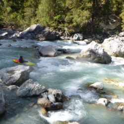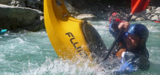 Acht Jahre ist es her, als wir zum ersten Mal Pfunds in Tirol als Ausgangsort für unsere Wildwassertouren gewählt hatten. Es war an der Zeit, die Erinnerungen aufzufrischen. Der Campingplatz Via Claudiasee bot ein komfortables Basislager. Nachdem wir am Anreisetag unsere Zelte im Regen aufbauen mussten, konnten wir die restliche Woche bei Sonnenschein genießen. Leider reichte der Regen nicht, um das fehlende Wasser in den Flüssen wieder aufzufüllen. Trotz Niedrigwasser in allen Abschnitten des Inn hatten wir viel Spaß an unseren Paddeltouren. Nachmittags blieb meist noch Zeit zum Baden und Rollentraining.