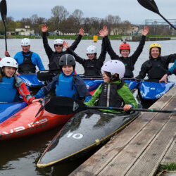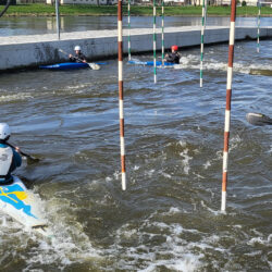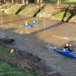 Unsere etwas erfahreneren Slalomkanuten haben etappenweise die Torkombinationen im oberen Teil des Kanals ausgereizt, um sich danach der gesamten Strecke zu widmen. Ihnen war die Anspannung ins Gesicht geschrieben und zuletzt die Freude, den Kanal gemeistert zu haben.