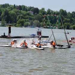 Sensationell hat unser U14 Team am vergangenen Wochenende den 51. Internationalen Deutschland-Cup am Baldeneysee in Essen gewonnen. Das Turnier gehört zu traditionsreichsten und größten Turnieren weltweit. Zum Teilnehmerfeld gehören Mannschaften aus nahezu allen europäischen Ländern und sogar Teams aus Chinese Taipeh reisen per Flugzeug an. Der Titel zählt mit der U14 Vizemeisterschaft und der U16 Meisterschaft zu den größten Erfolgen der noch jungen Kanupolo-Vereinsgeschichte. Das Pfingstwochenende 2023 wird sicherlich ein unvergessliches Ereignis für alle Teilnehmenden bleiben. Unser U16 Team und unser Herrenteam komplettieren mit dem 9. (von 15) und einem 16. (von 24) Platz dieses tolle Wettkampfergebnis. Ein großer Dank geht an unsere UnterstützerInnen vor Ort, die maßgeblich zum besonderen Teamspirit beigetragen haben.