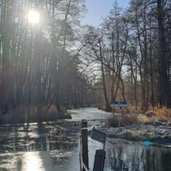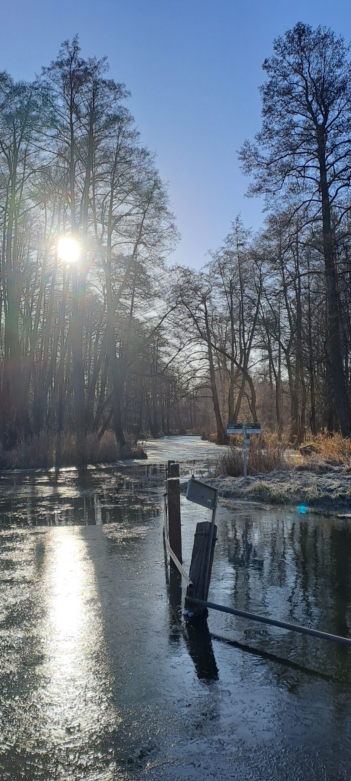 Unsere traditionelle Jahresabschlussfahrt führte uns am 28. Dezember in den Winterspreewald. Startpunkt war wie 2022 der Campingplatz in Lübbenau. In den Nächten zuvor waren die Temperaturen auf unter –10 °C gefallen, entsprechend gespannt waren wir, was uns auf dem Wasser erwarten würde.